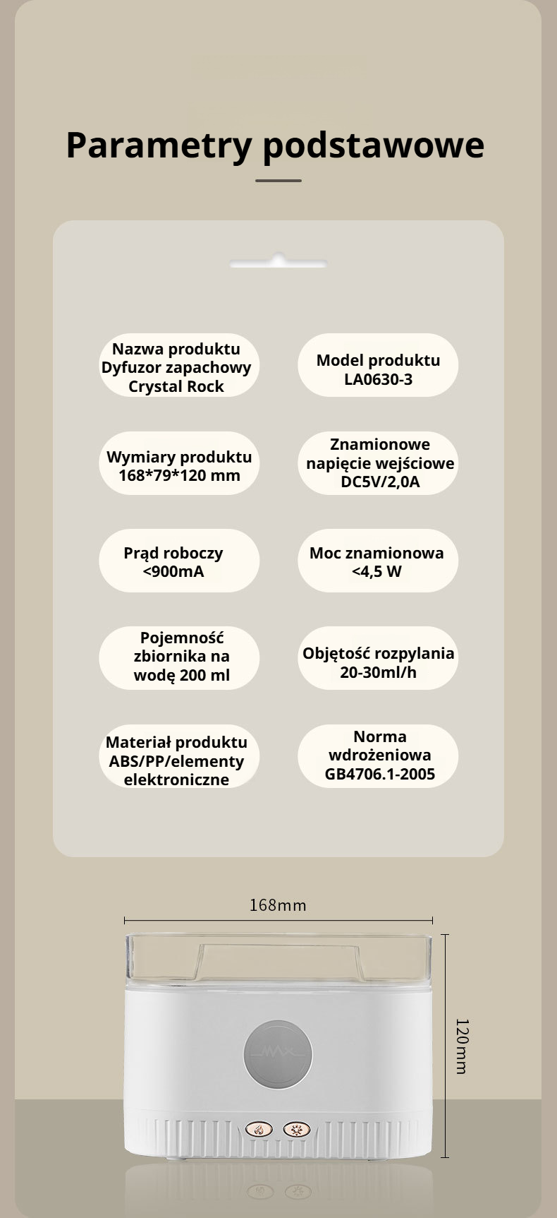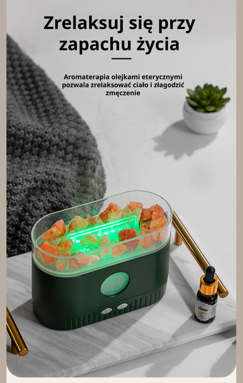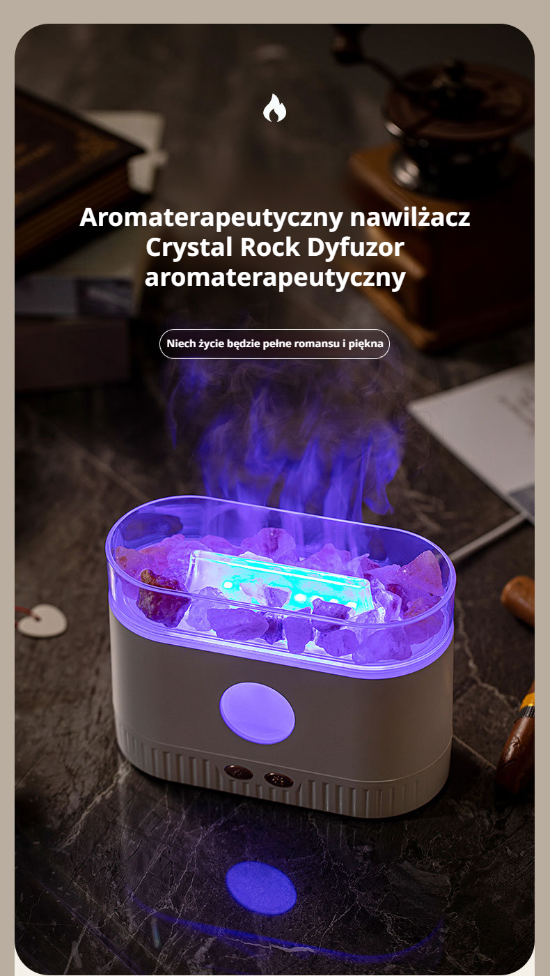 Nawilżacz powietrza z kryształową skałą i aromaterapią