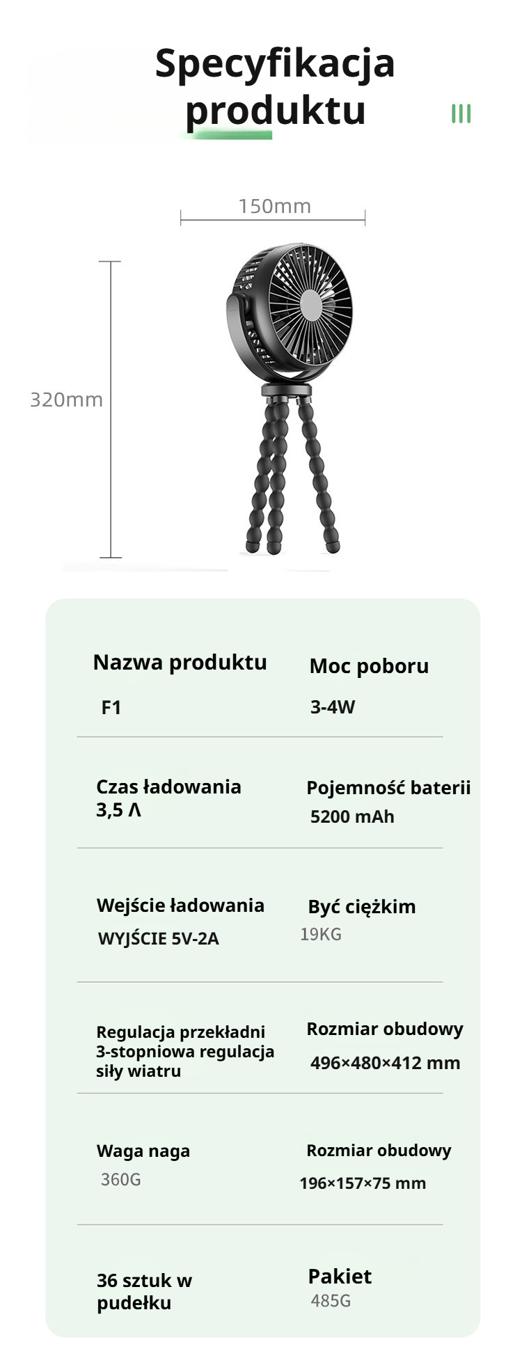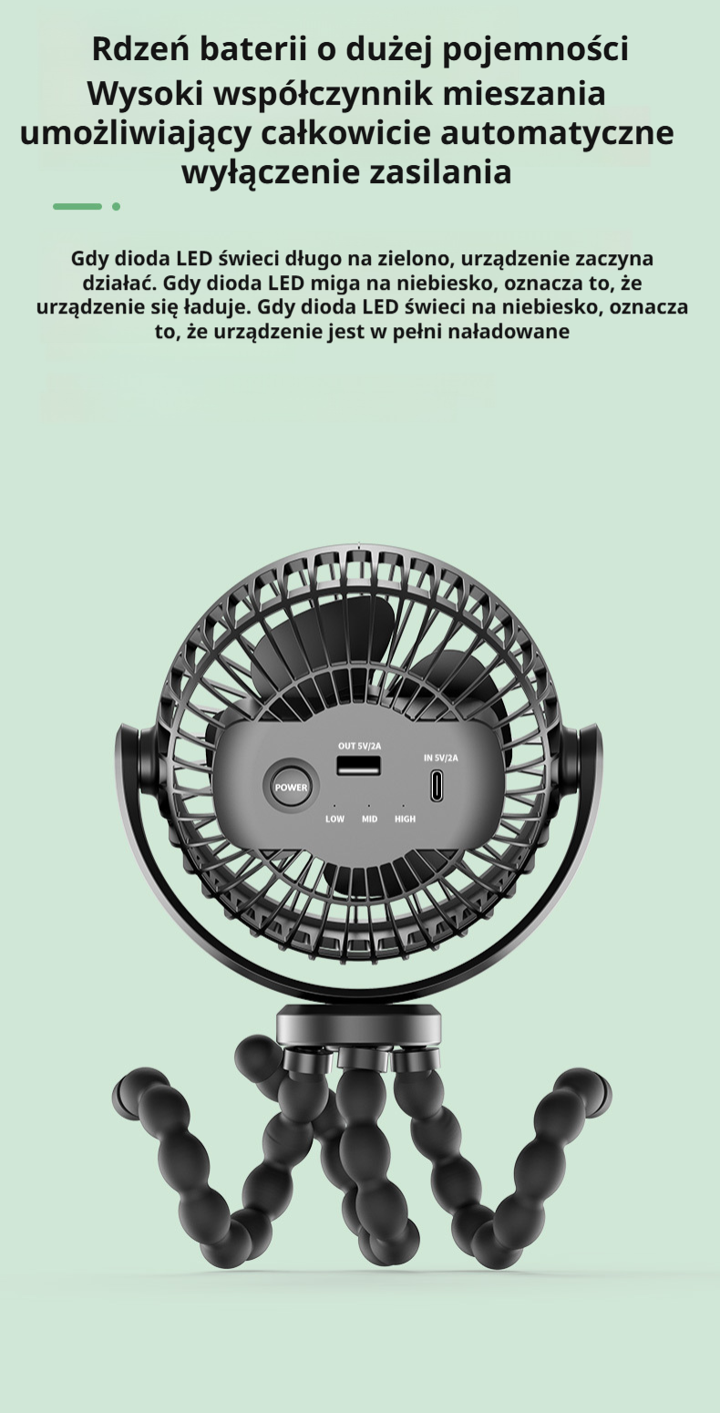 wentylator ośmiornica, przenośny, do użytku na zewnątrz, cichy i o dużej mocy