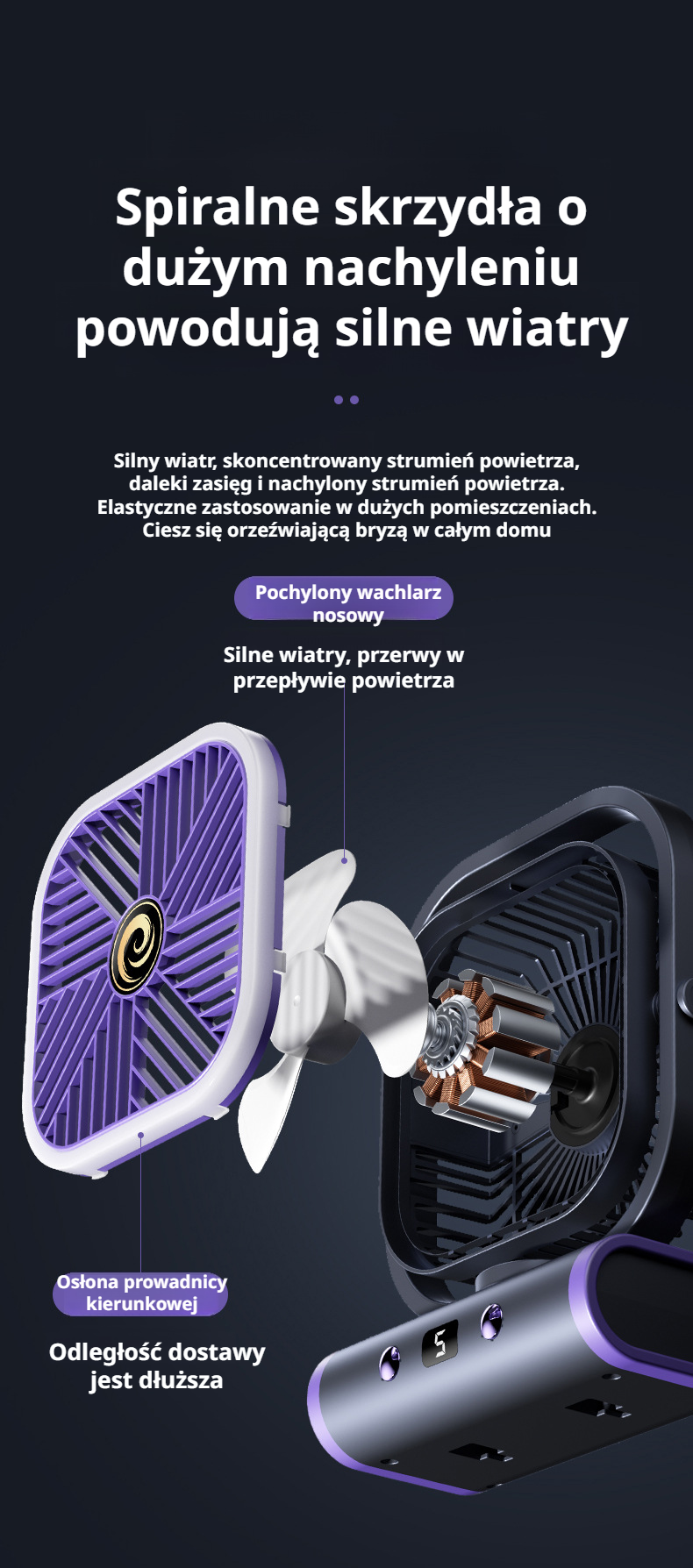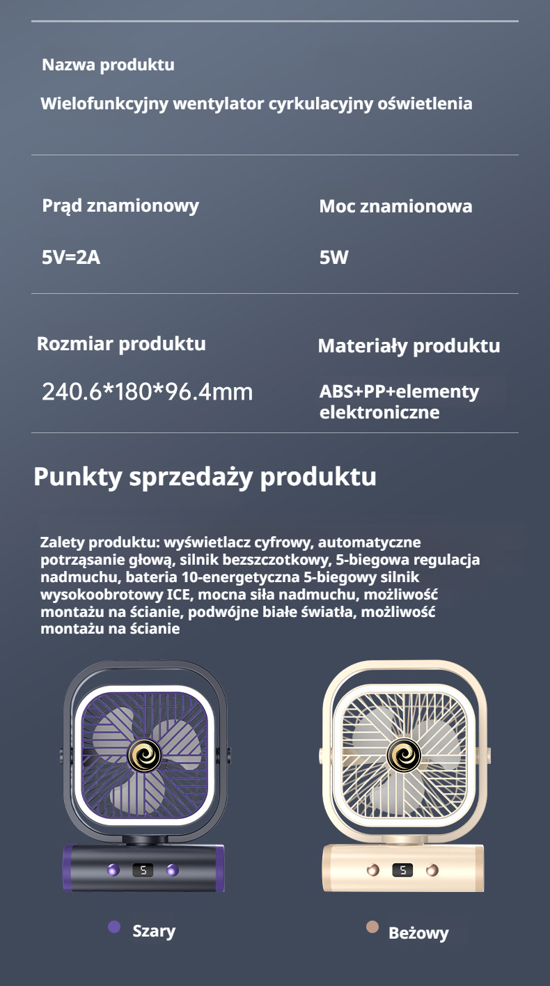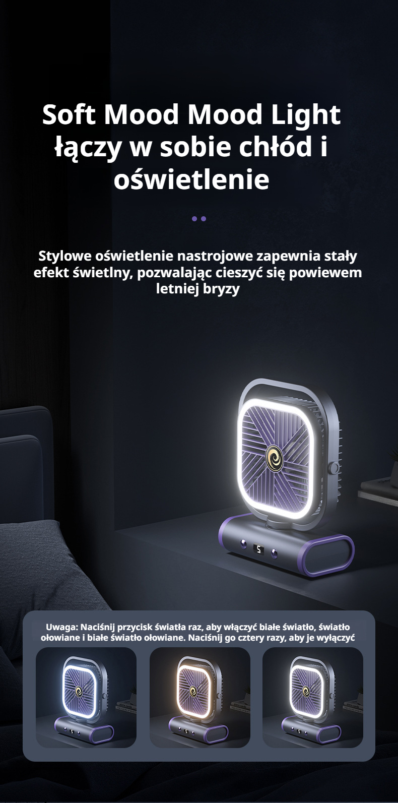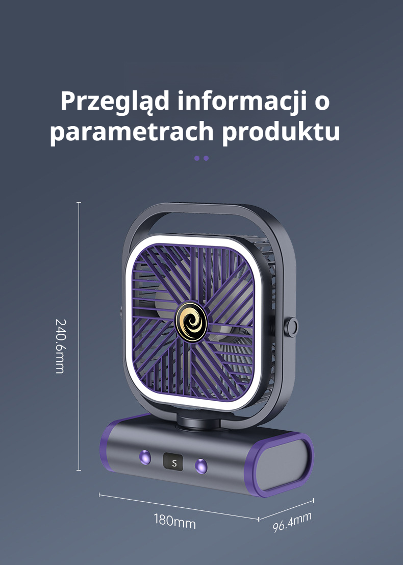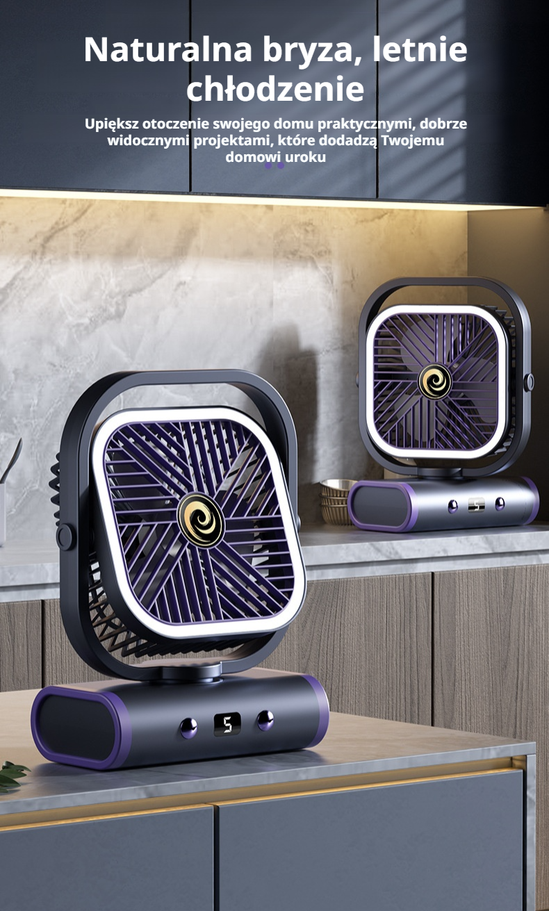 Wielofunkcyjny wentylator ładowany do użytku na zewnątrz, obozowy, z funkcją oscylacji