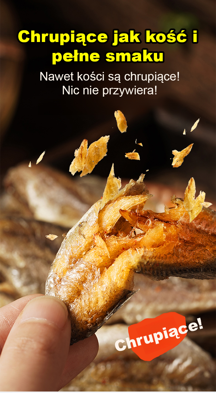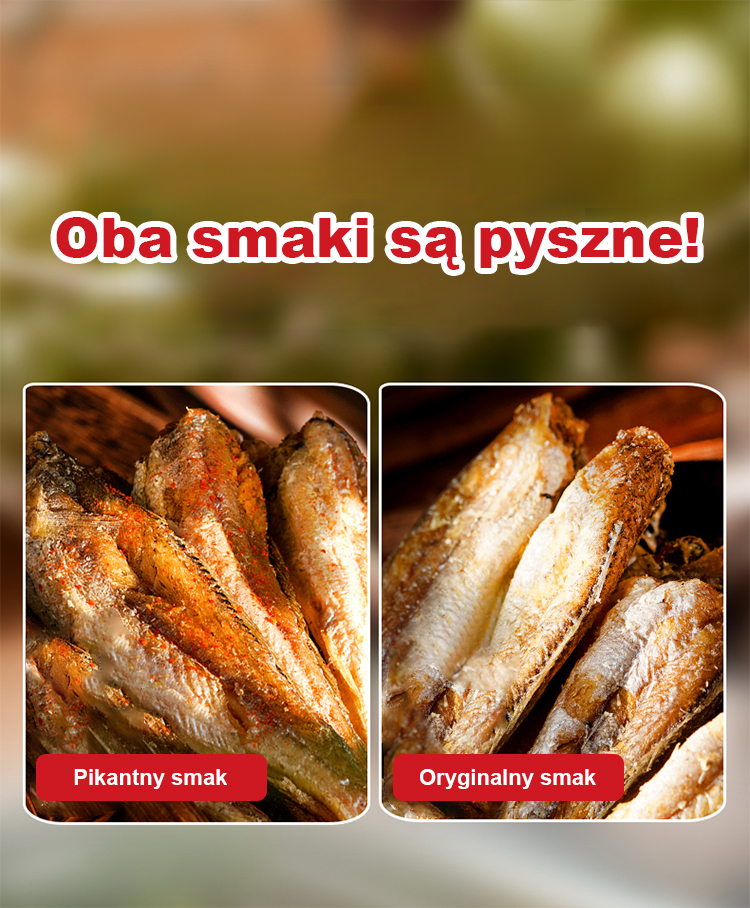 😋 Pieczone w niskiej temperaturze, bez oleju. Każdy kęs jest chrupiący i pyszny, z delikatną, bezkostną rybą. Bogate w kwasy tłuszczowe omega-3. Idealne do oglądania telewizji, pracy lub jako zdrowy obiad.